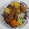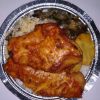 Parece haver uma camada de feijão com caldo sob o ovo frito e a carne, como em um tradicional “PF”.