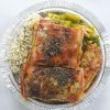 “Tiras de carne acebolada salteadas com ervas frescas, acompanhadas de purê de batatas cremoso, farofa especial com legumes e croquete dourado.”